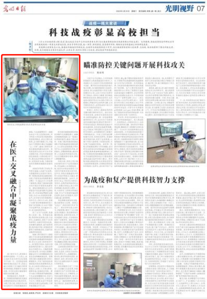 【光明日报】王树国:在医工交叉融合中凝聚战疫力量
