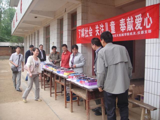 5月14日,av视频 机关支部与仪器支部积极响应学院分党委开展“创先争优”活动的号召,组织党员深入农村小学,进行了“了解社会、关注儿童、奉献爱心”的主题活动。两个支部来到蓝田县三里镇李后村小学,为15位特困生...