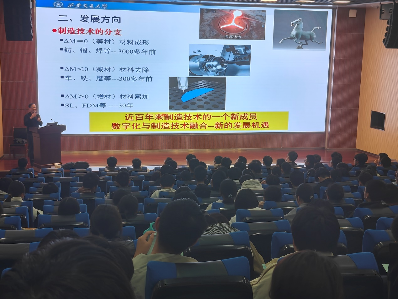 作为中国机械工程学会增材制造分会副主任委员,李教授还向同学们介绍了3D打印技术的发展历程和未来趋势。他指出,这项技术不仅代表着制造业的未来发展方向,更为年轻人提供了广阔的创新空间。“3D打印是创新利器,更是培养科技人才的重要载体。”李教授鼓励在场学子要勇于探索,敢于创新。