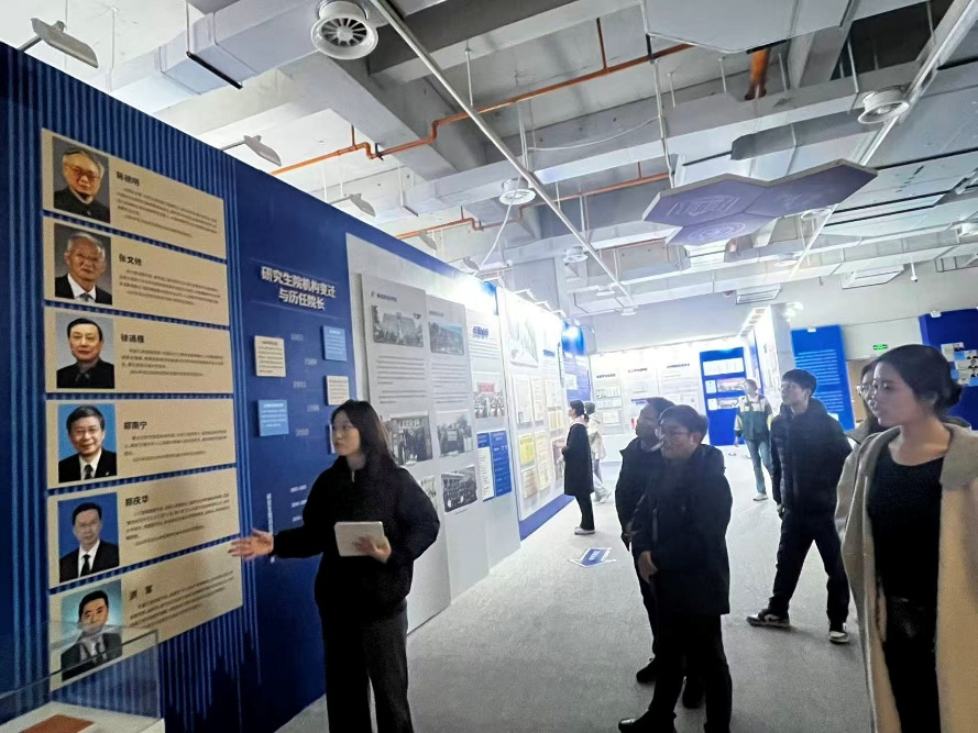 研究生教育展展区。大家沿着时间脉络,系统了解了学校研究生教育从开创探索到深化改革、从持续攀登到追求创新的发展轨迹。从早期为国家培养紧缺专业人才,到如今聚焦新质生产力发展需求、培育高层次创新型人才,展区呈现的人才培养成果与科研创新突破等内容,让支部成员深切体会到研究生教育在服务国家战略、推动产业升级中的重要作用。