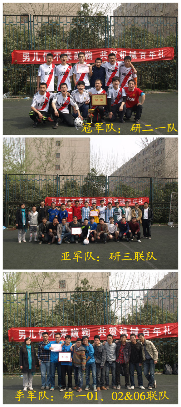 本次足球赛共有6支队伍参加,分为两个小组,经过激烈的比拼,研二一队、研三联队、研2001、2002&2006联队、硕2005&2076联队成功出线。