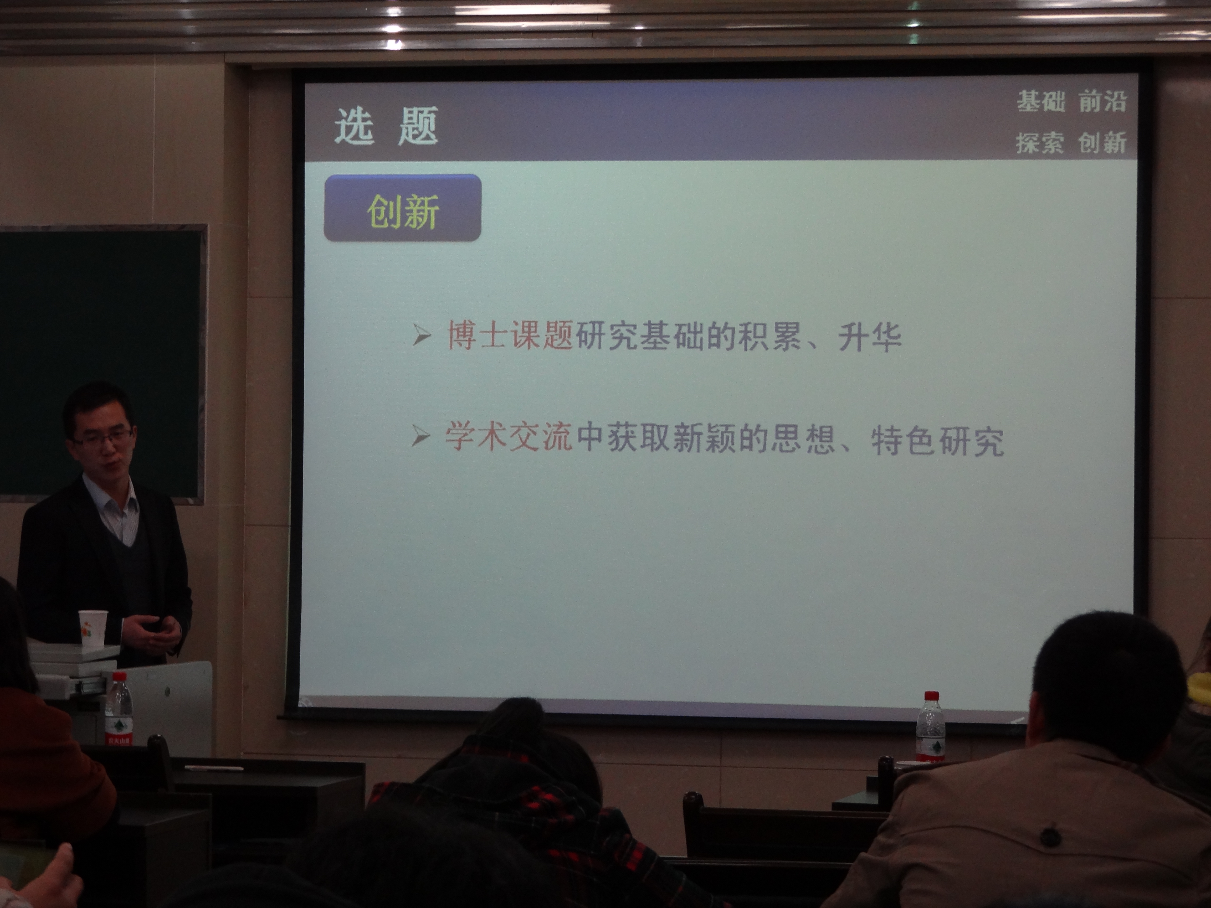 闫柯师资博士后为老师、同学们讲述了其入校后通过青年基金项目申报而获得的成长,认真、细致地总结了他在申报青年项目过程中的思考,特别是为青年教师展示了怎样成功地从博士科研工作完成到青年教师科研工作的提升。
