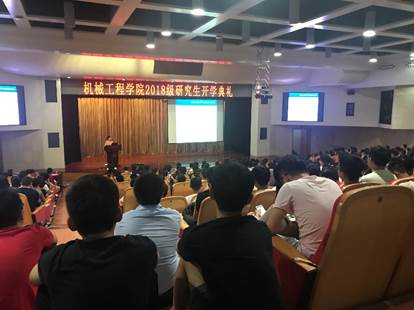 的基本情况,带领新生认识了学院的发展历程,介绍了机械学科的特点、未来机械学科的发展方向等。陈院长用“自信”、“创新”、“担当”这三个关键词告诉新生应该如何度过自己的研究生生活。首先要树立成就伟大事业的远大志向,要有强大的自信心,勇敢面对科研与生活中的挫折和困难;其次,要在科学研究中独立思考,勇于创新,不断探索,才能收获科学的真知;最后,他告诉同学们,做人要有担当,勇于承担责任,把每一次科研任务当做锻炼提升自己的机会,与导师、同学处理好日常关系,要心中有阳光,快乐的度过自己的研究生生活。