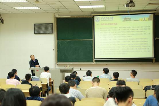 学校保卫处王宏科队长向同学们做了安全防范专题报告。通过PPT和视频的形式向大家详细介绍了校园常见的各类违法犯罪活动,并提醒大家提高警惕,加强防范,保护好人身财产安全,遇到异常情况多与同学交流沟通,或者及时拨打保卫处的报警电话。