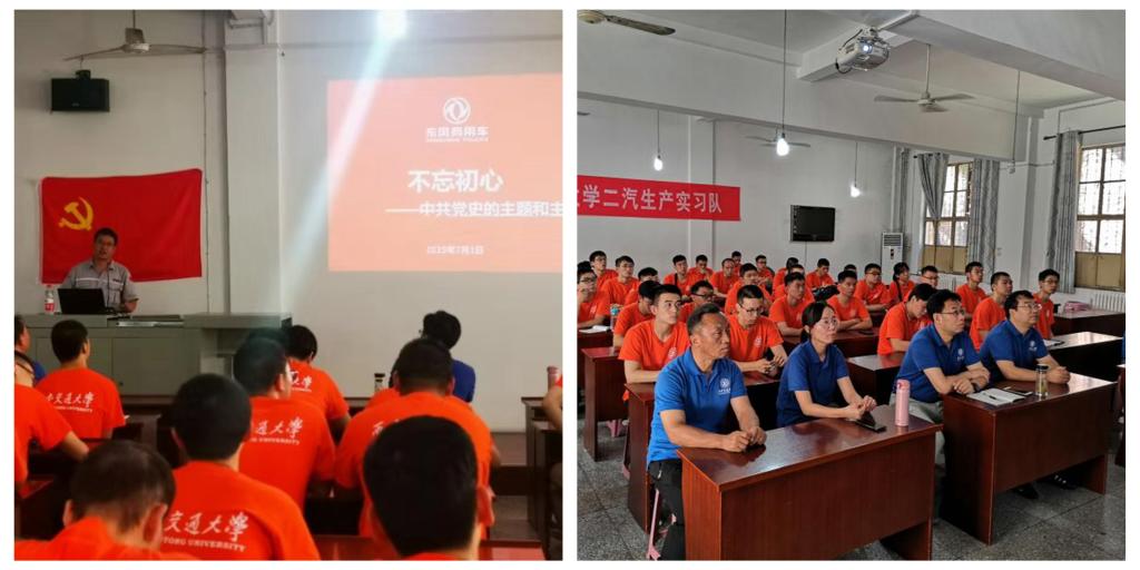 7月1日下午,实习队组织全体学生党员、预备党员和入党积极分子齐聚东风发动机厂电教室,邀请东风商用车有限公司动力总成工厂政工办胡智伟主任与大家一起开展了一场别开生面的组织学习活动,在实习队队长蒋克俭老师主持下,大家围绕“不忘初心、勇于奉献、敢于担当”的主题涌跃发言。胡主任用大量的图片和视频再现了东风汽车的艰苦创业史、发展历程和许多可歌可泣的事迹,特别是发动机厂青年突击队徒手建设青年桥背后的感人故事,东风汽车今天的业绩离不开这种勇于奉献和敢于拼搏的精神,他还鼓励同学们珍惜学习机会,敢于攀登科技前沿,不忘初心,为祖国的未来担当起党员的责任。