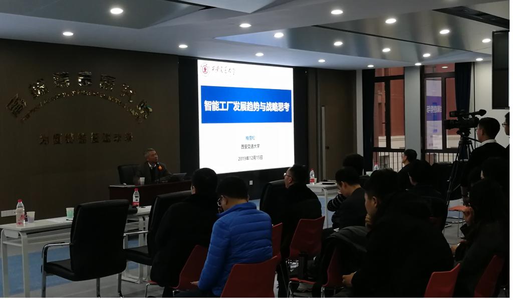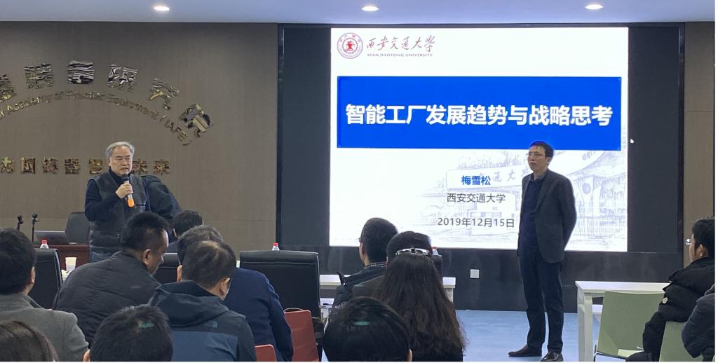 教授梅雪松作了关于国家2035战略规划的精彩报告。高端装备研究院院长陈雪峰教授致欢迎词并主持报告会,高端装备研究院全院近200名师生到场聆听。