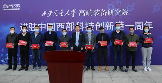 在中国西部科技创新港高端装备研究院西门前举行了一场特殊的庆祝仪式。中国科学院院士李应红、中航物业地产事业部西安区副总经理彭树泉应邀出席,参加庆祝活动的还有高端装备研究院书记王朝晖,院长陈雪峰,副院长段玉岗、周光辉、邵金友,各系所领导及部分教师、职员,活动由副书记张敏主持。