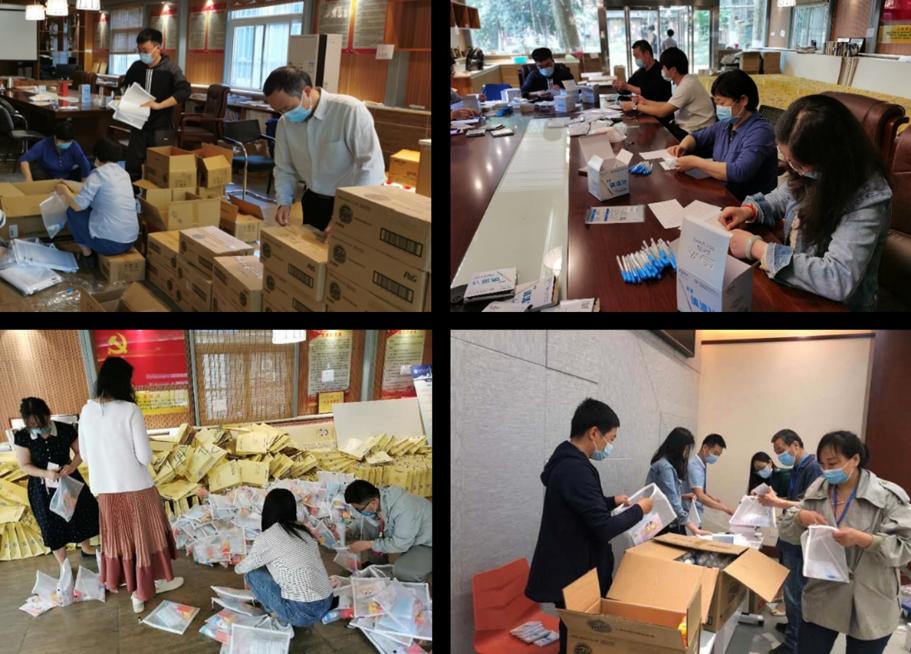 学院院办多个办公室联动,职员老师不畏艰难,挑灯夜战抢进度,亲手将一份份防疫包的包装完成,除学校礼包之外,学院还为每位同学购买了肥皂和随身消毒凝胶,保证每位同学返校后有足够的防疫物资。