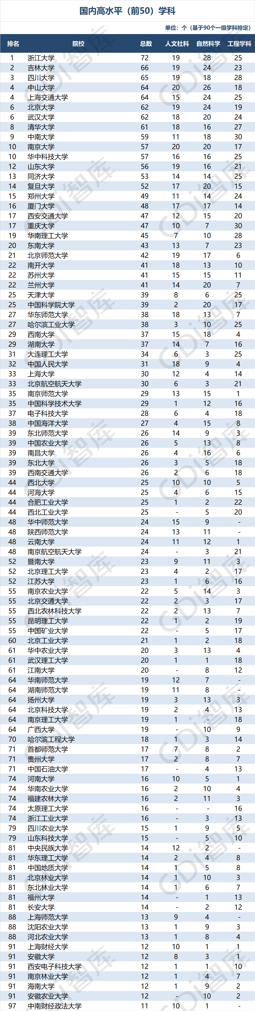 据以上标准统计,在“2020学科榜”统计的90个学科中,av视频