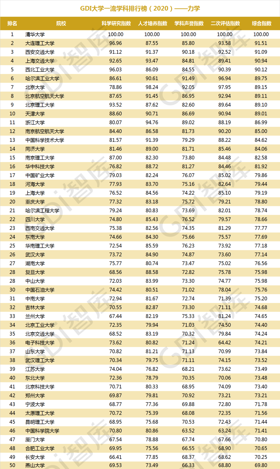 6月15日,广州日报数据和数字化研究院(GDI智库)发布“GDI大学一流学科排行榜(2020)”(下称“2020学科榜”),通过科学研究指数、人才培养指数、学科声誉指数和二次评估指数四大一级指标科学评价516所院校艺术类学科外的90个学科。