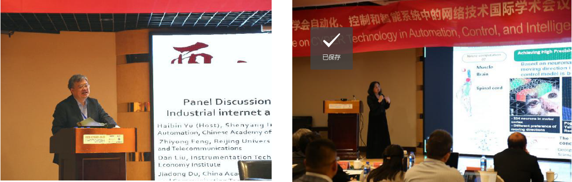 校党委常委、校长助理洪军教授的大会致辞,IEEE RAS前副主席、中国科学院沈阳自动化所刘连庆研究员,以及中国振动工程学会动态测试专业委员会主任委员、浙江大学杨世锡教授分别代表组办单位致贺词。随后,会议举办了一场专题讨论会和三场大会报告。专题讨论会主题为“Industrial internet and 5G ”,由中国科学院沈阳自动化研究所于海斌所长主持,北京邮电大学冯志勇教授、机械工业仪器仪表综合技术与经济研究所刘丹工程师以及中国信息与通信技术研究院杜加懂副主任参与了该专题讨论:“从工业自动化发展的需求,给出了5G和工业互联网的概念、内涵及技术应用的新见解”。三场大会报告包括:中国科学院自动化研究所乔红教授就“Brain-inspired robotic vision, strategy and system”作的主题报告:“展示其团队在类脑智能领域的研究成果,分析人的认知活动的神经生理学原理,并从人的认知活动出发设计模拟神经系统,提出仿生感知和认知模型等”,以及深圳市智能机器人研究院张启毅研究员就“Industrial Robot Control: Evolutional Advancement and Proposed Trend”作专题报告:“介绍典型工业机器人的工作性能、控制算法等,并预测工业机器人的发展趋势”和美国佐治亚理工大学陈义华教授就“Fuzzy Dynamical Systems (FDS): Origin and Development”作专题报告:“给出模糊动态系统研究的起源和基本理论,展示最新的研究成果”。