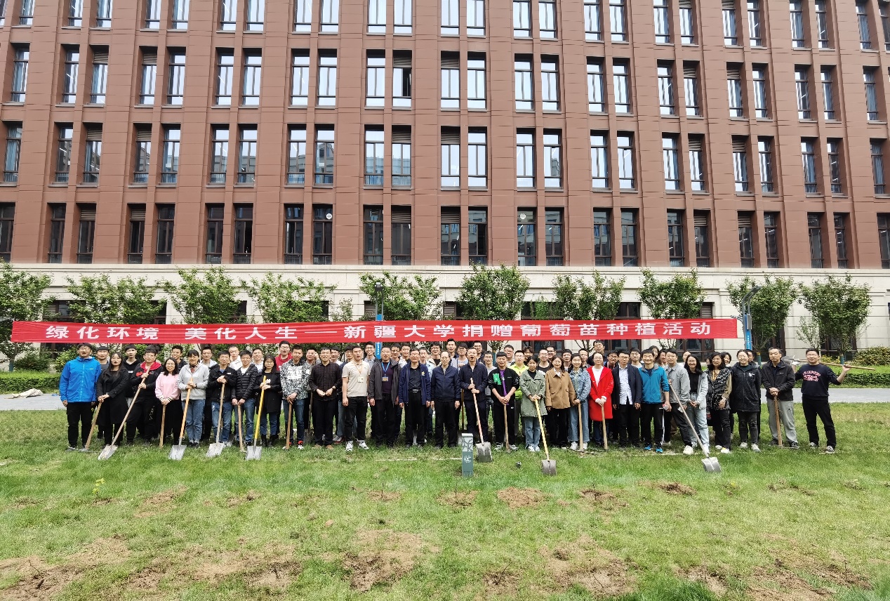 给高端装备研究院捐赠500颗葡萄苗,以示两院建立的深情厚谊和携手发展的美好愿景。14日下午,高端装备研究院师生将一棵棵葡萄苗精心种植于高端院的“新疆大学葡萄园”内,搭建两院友谊葡藤,美化绿化校园环境,打造高端院一道亮丽风景线。