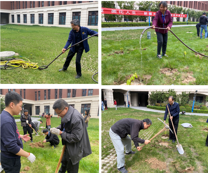 与新疆大学的深厚友谊。随后,丁立库、杨江坤、苏宇三位老师讲解葡萄苗种植要点,叮嘱大家“一定要挖30厘米见方的坑,这样葡萄苗成活率才高”,并组织师生列队分组、划分区域、领取工具。葡萄种植过程中,大家严格要求,拉线取直,精准测量……2个小时的劳动,大家干得热火朝天。