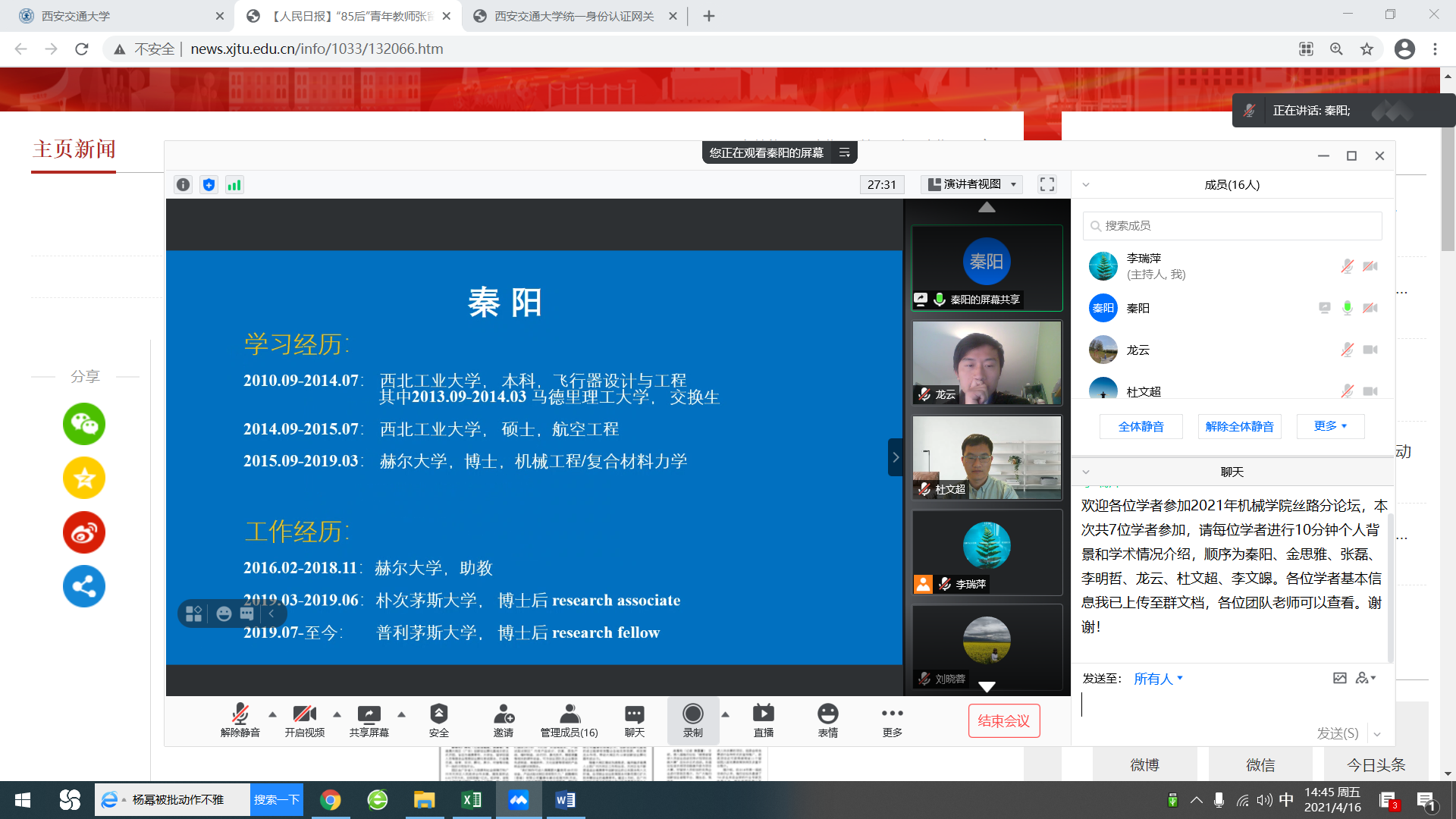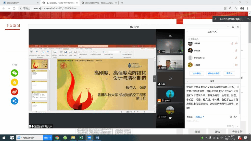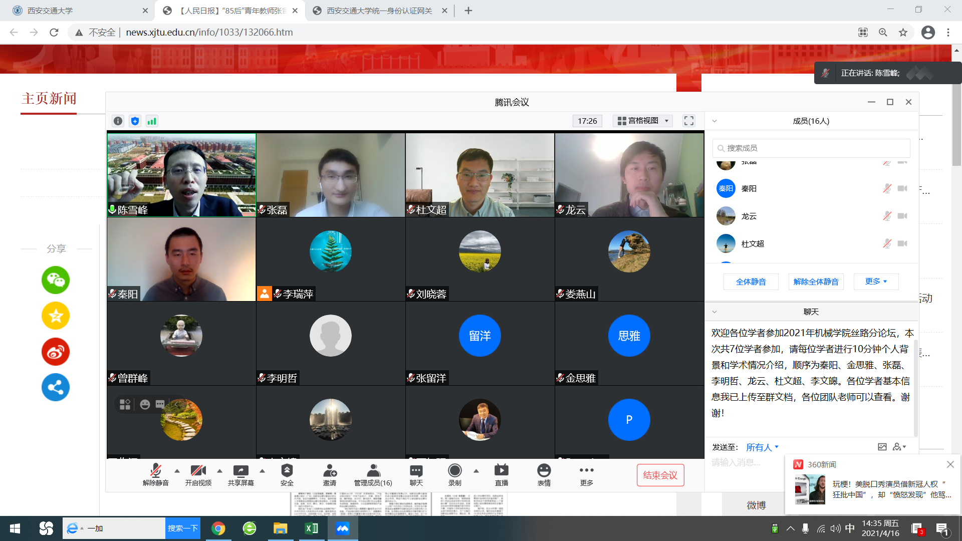 4月16日下午,第七届“丝绸之路青年学者研讨会”机械分论坛以线上方式召开。来自海内外不同国家的青年学者、学院青年人才及各相关领域的团队负责人通过网络会议“见面”、交流。av视频