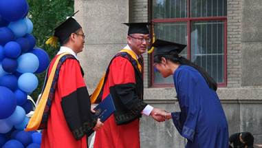 随后,学位授予仪式正式开始,各位老师为学生拨穗并颁授学位证书。