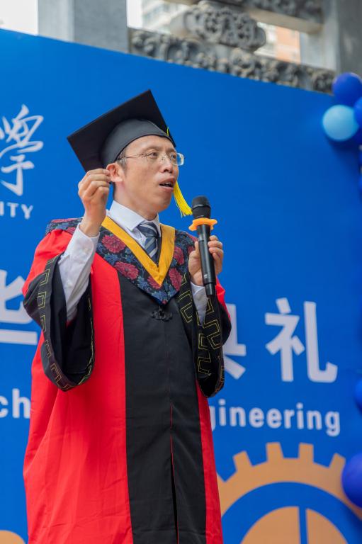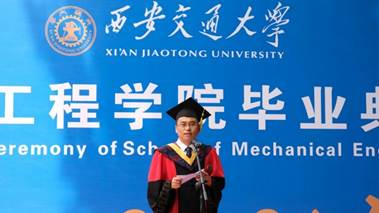 院长陈雪峰发表总结演讲。陈院长期望毕业生无论在什么岗位上,都要成为交大机械学科的宣传者,都要做出更好的成绩,作出更大的贡献,为机械工程学科发展贡献自己的力量,并且要勇于承担国家使命、社会使命和交大机械学科永居第一的使命。
