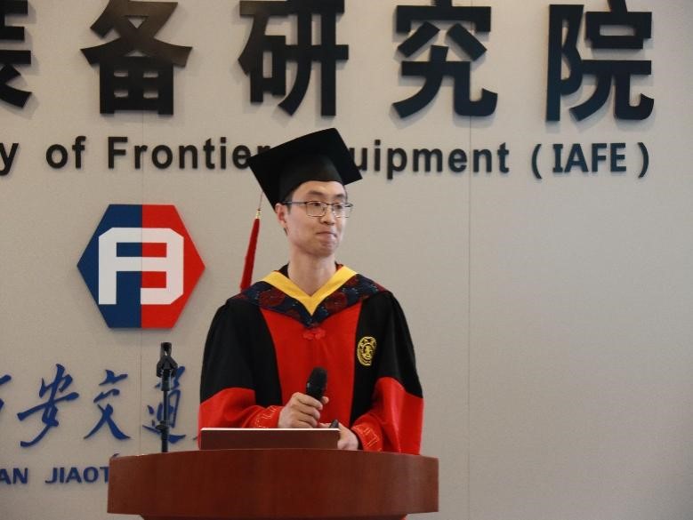 随后是毕业生代表李健辉同学分享感受,主要从自身科研经历出发,介绍自己留学时候的难忘经历,细数在导师和同学指导和帮助下攻克一个个科研难题后的成长与喜悦。最后表达了对祖国的热爱,对母校的感激与留恋,令在座师生为之感动。