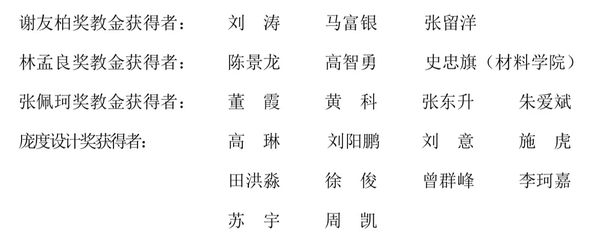 2021年度奖教金获得者名单(按照姓氏拼音顺序排序)