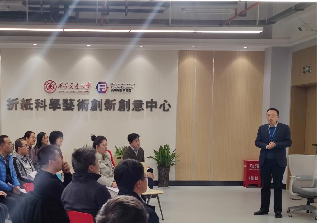 陈雪峰院长为活动致辞。他指出,折纸科学是机械学科的一个非常前沿的研究方向,具有典型的多学科交叉融合的特色。在高端院建立的折纸中心是为了给广大师生提供一个交流沟通的场所,并通过动手实践将灵感创意转化成工程应用。折纸中心的建立是av视频