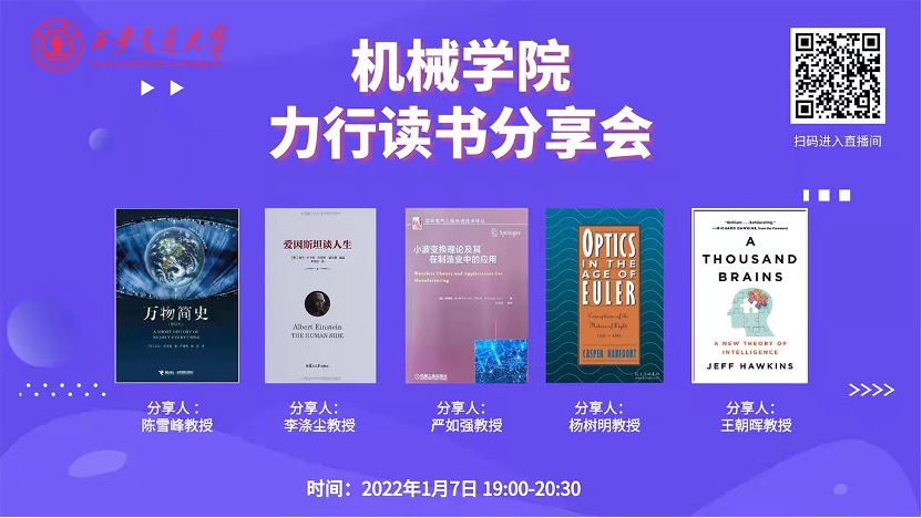 院长陈雪峰教授、机械制造系统工程国家重点实验室主任李涤尘教授、国际机械中心主任严如强教授、副院长杨树明教授和党委书记王朝晖教授依次进行了读书分享,av视频