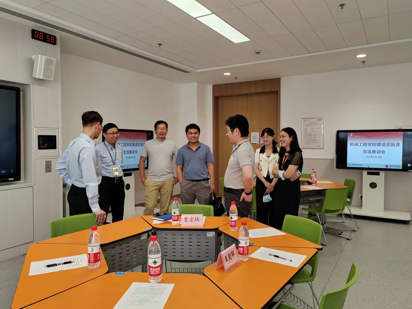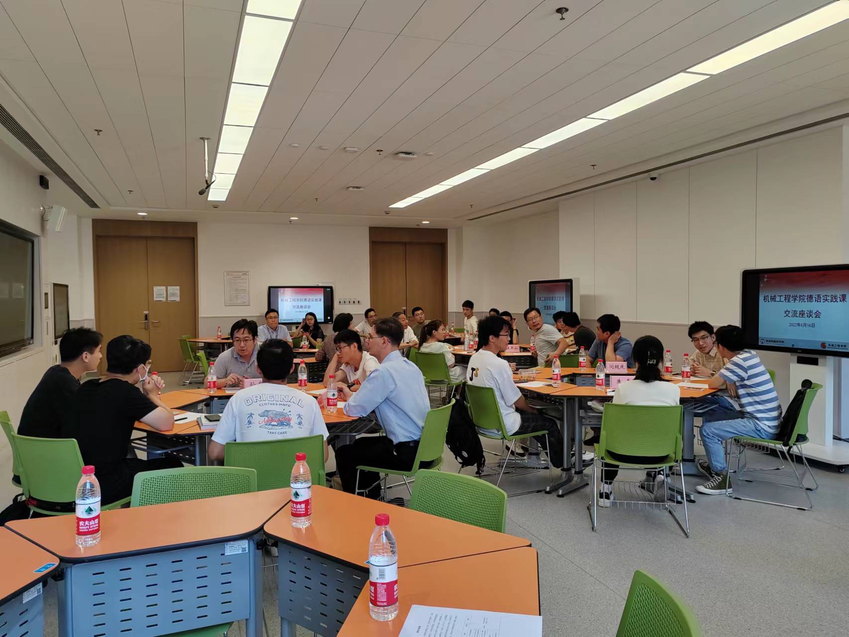 研究生德语实践课交流座谈会在创新港校区2-3004举行。学院分党委书记王朝晖、德裔外教Sebastian Degen、机器人所副研究员孙铮、德语实践课授课教师何小超以及学院多名留学德国的教师、选修课程研究生30余人参加座谈。院长助理曹宏瑞主持会议。
