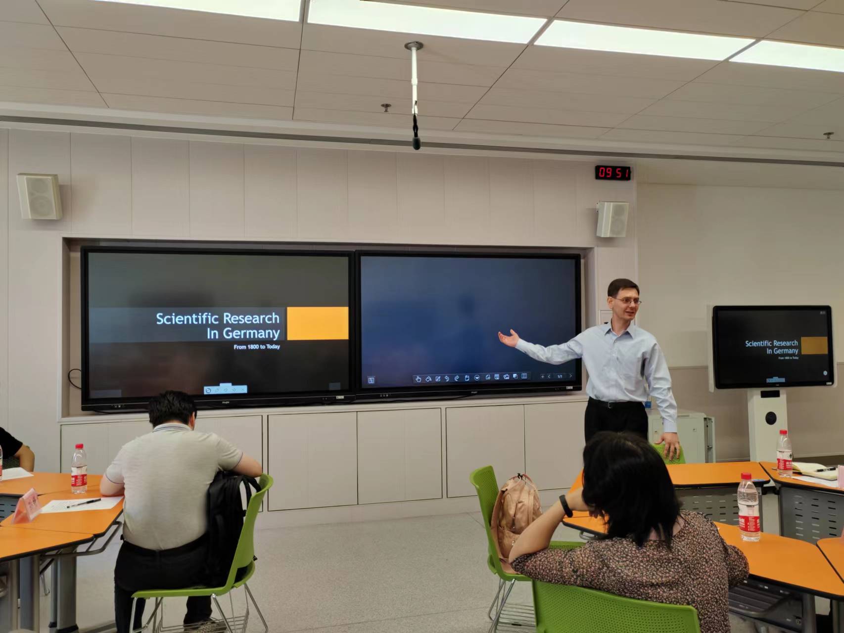 Sebastian Degen通过师生互动的方式深入交流了德国从1800年至今教育与科学的发展变化,介绍了德国的大学以及四大著名研究所,使得同学们很快对德国科研体系结构有了详细的了解。
