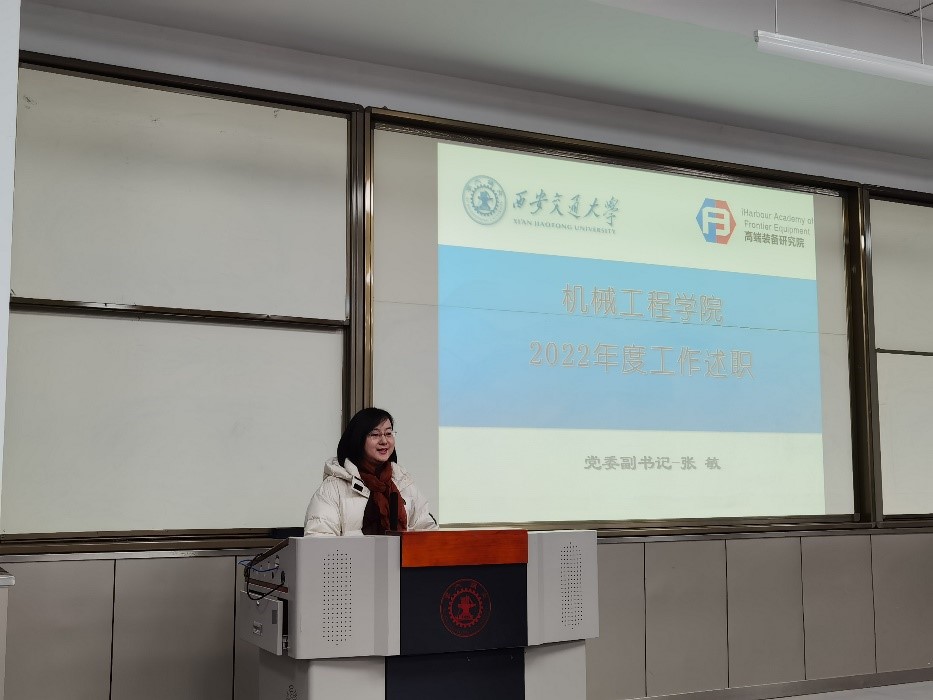 张敏副书记从党建工作、团学工作、社会实践、奖助贷及心理工作、疫情防控、就业情况等方面进行了汇报。张敏副书记提到博大、包容、踏实、肯干的机械精神激励和影响着自己和辅导员团队,和谐、务实、奋进、拼搏的文化氛围为学院发展提供了精神沃土,培养出的学生具有了交大人机械特有的优质品格和职业操守、助力学科发展和国家强盛。