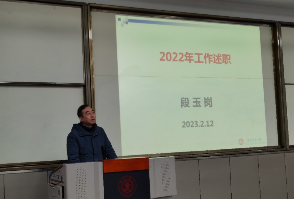 分党委书记王朝晖教授回顾了2022年学院党委工作。过去一年,学院党委深入学习贯彻落实党的二十大精神,激发支部活力,增强党员模范带头作用,带领全院教职工推动学院各项工作持续健康发展,为创建世界一流机械学科提供坚强的思想引领和作风保障,营造风清气正的教学科研环境。此外,王朝晖书记还从抗击疫情等方面做了汇报,对大家在抗击疫情和学科建设中做出的贡献表示感谢。最后,王朝晖书记以“休对故人思故国,且将新火试新茶,诗酒趁年华”来鼓励教职工把握现在、主动作为、开拓创新、砥砺奋进。