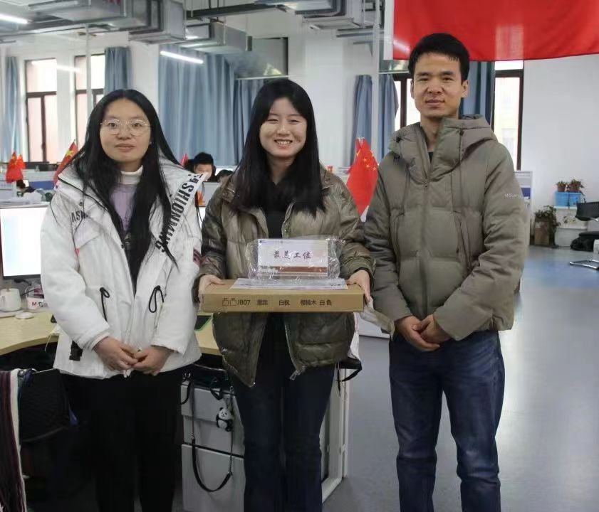 各研究所(中心、系)领导代表、学院研究生工作办公室辅导员代表、研究生会代表等前往力行楼各工位房间进行研究生“最美工位”颁奖仪式并为获奖工位学生送上奖品。