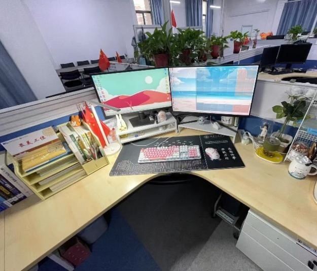 同学的创造力。每个工位都干净整洁而又独具特色,不仅展现了同学们的才华和激情,也激励同学们共同努力,为自己创造一个美好的学习和工作环境,以舒适的心情完成自己的学习任务。