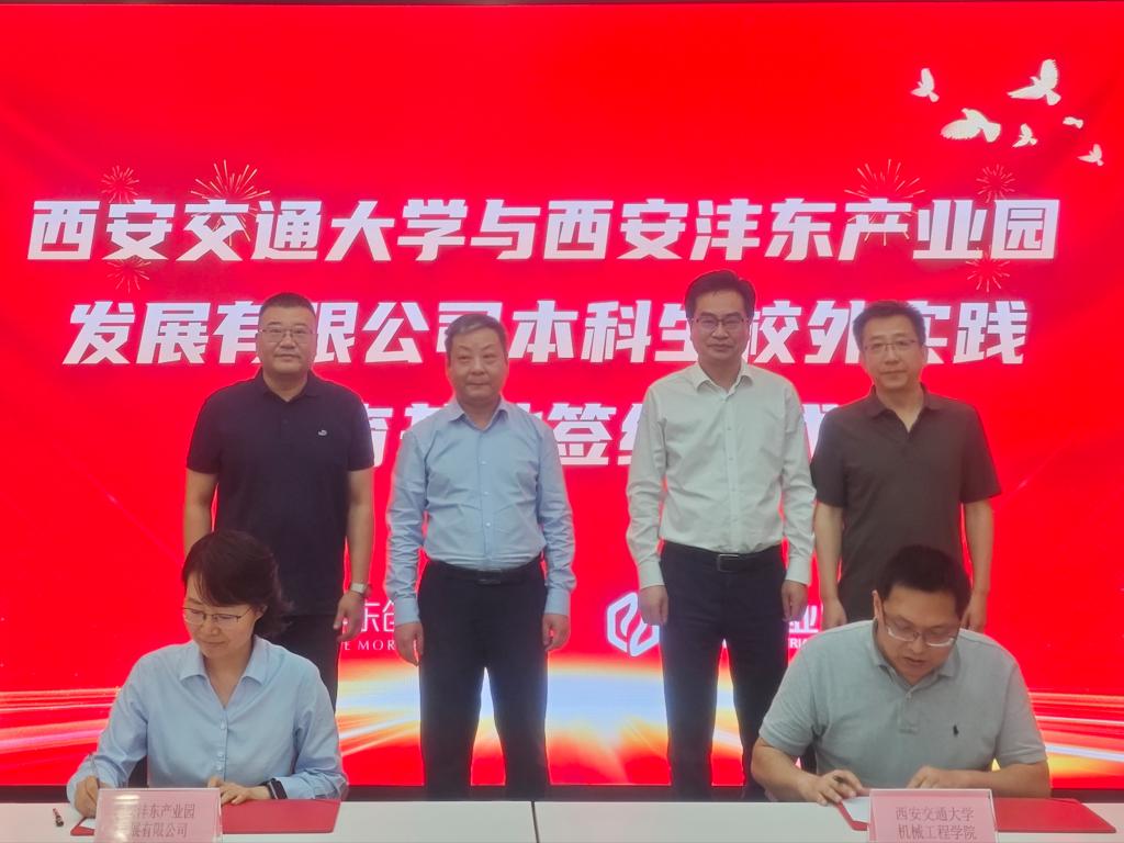 副院长王永泉一行前往秦创原(沣东)创智云谷产业园实地考察走访,并与西安沣东产业园发展有限公司签署本科生校外实践教育基地共建协议。沣东集团副总经理苏勇,沣东地产总经理张勇,西安沣东产业园发展有限公司执行董事兼总经理张萍出席签约活动。
