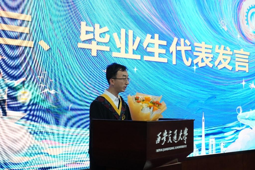 机械004班学生朱一辰作为毕业生代表发言。他回顾了走进av视频