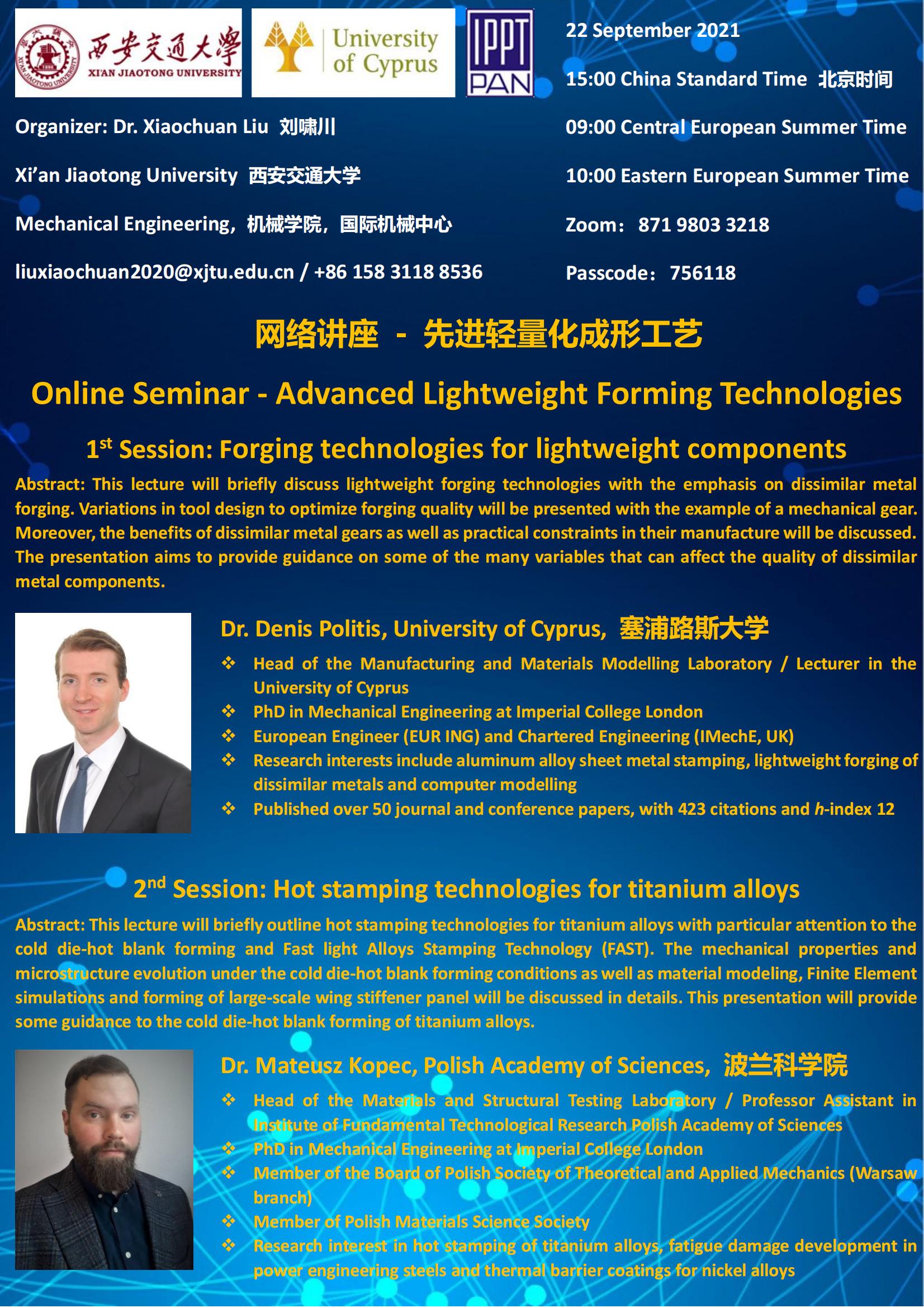 主题:Advanced Lightweight Forming Technologies 先进轻量化成形工艺