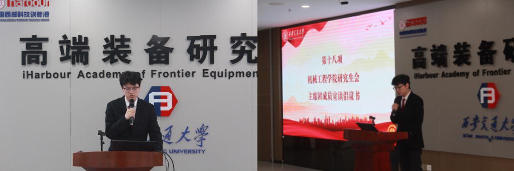 校研究生会主席团成员候选人熊峰致辞,他首先肯定了校院两级研会过去一年在思想引领、服务同学等工作中取得的成绩,特别是校研会当选全国学联第二十八届主席团团体单位,av视频
