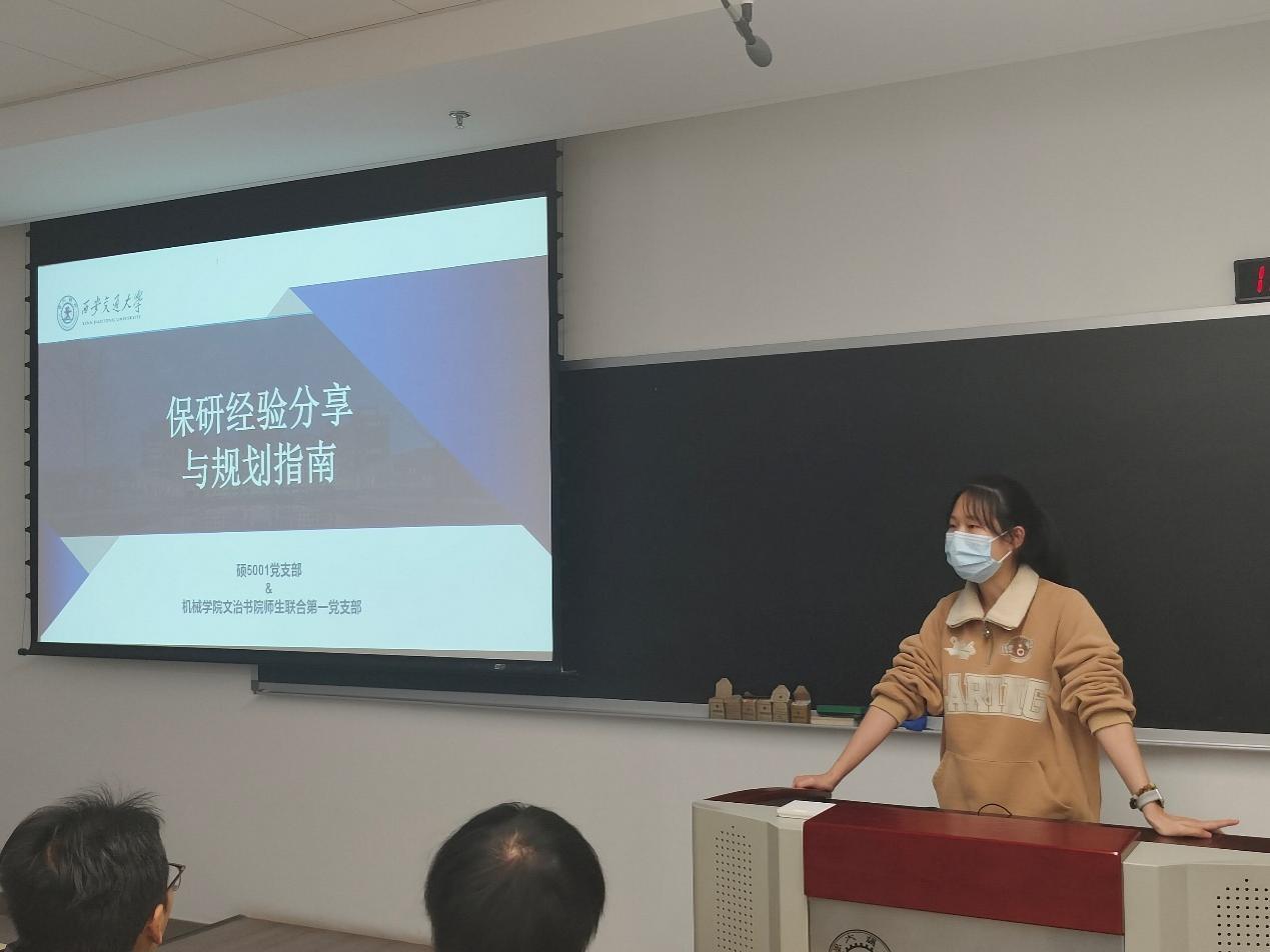 硕5001党支部谢菊季同志则聚焦保研规划开展实操性分享,围绕绩点、科研经历、英语水平三大核心基石,拆解保研关键时间节点,详细传授简历打磨、个人陈述撰写、推荐信准备的实用技巧,重点强调面试中自信表达、专业功底、科研复盘与真诚谦逊的重要性。在答疑环节,谢菊季同志针对本科生关心的方向选择问题给出建议,鼓励大家通过多了解、多尝试找准适合自己的发展道路,并提倡自律作息与互助学习,以营造积极向上的成长氛围。