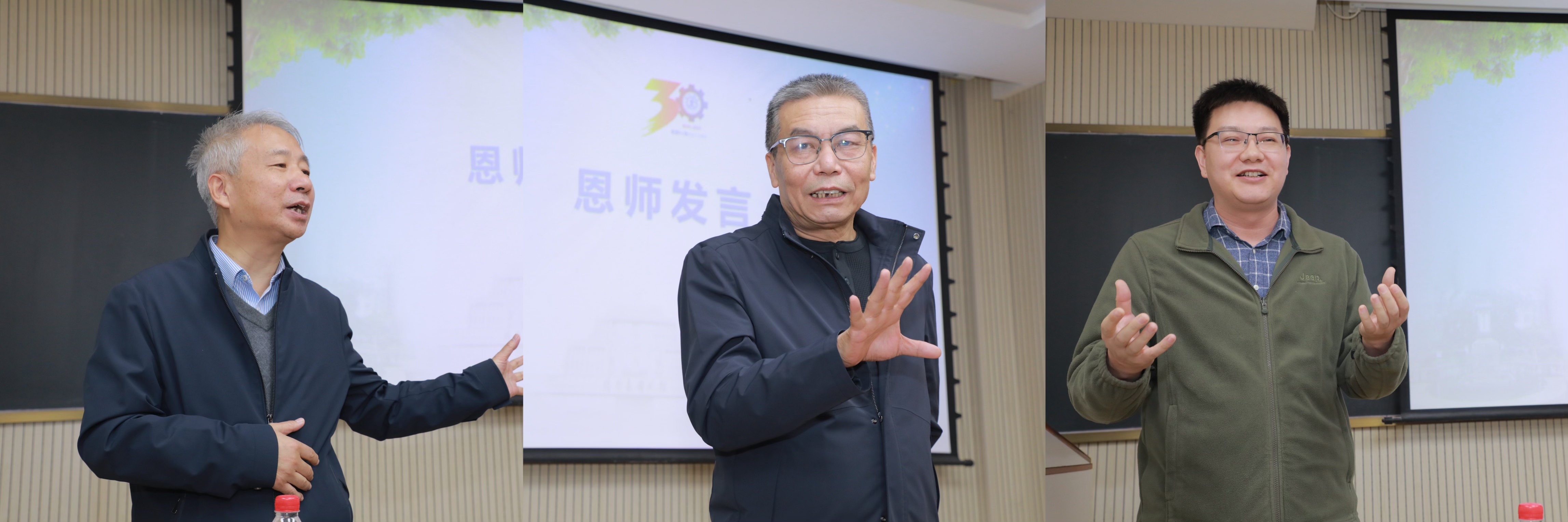 座谈会伊始,校友代表首先介绍了到场参会嘉宾,全体校友共同向恩师致以诚挚问候。随后,现场播放回顾片《机械情缘,风华少年》,校园旧貌、课堂片段与师生合影等画面,唤醒了在场师生的共同记忆。期间,校友们逐一分享个人职业发展历程,深情追忆大学时期的青春岁月,由衷感慨母校三十年来的蓬勃发展与显著变迁。现场温情涌动,师生间、校友间的情感共鸣愈发强烈。