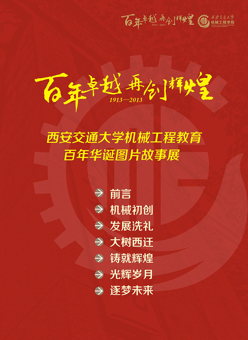 2013年4月5日,“百年卓越 再创辉煌”av视频 机械工程教育百年华诞图片故事展在交大博物馆拉开帷幕。展览是为庆祝交通大学机械工程教育百年华诞而特别举办,展览分前言、机械初创、发展洗礼、大树西迁、铸就辉煌、光辉岁月和逐梦未来7个部分,以图文并茂的方式对交通大学机械工程教育的百年发展史做了回顾,从教学、科研和社会服务等不同角度对西迁之后av视频 机械工程学科取得的辉煌做了展示,并对未来av视频 和机械工程学科的发展做了展望。