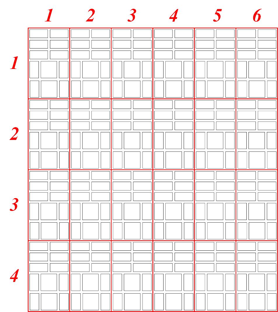 如图3所示为尺寸大小为1500mm×1500mm×50mm的吸声超结构样件的1/20示意图。将图3(a)所示的结构在水平方向周期排列6块,并在竖直方向周期排列4块即可组成1500mm×1500mm×50mm的吸声大样件,如图3(c)所示。