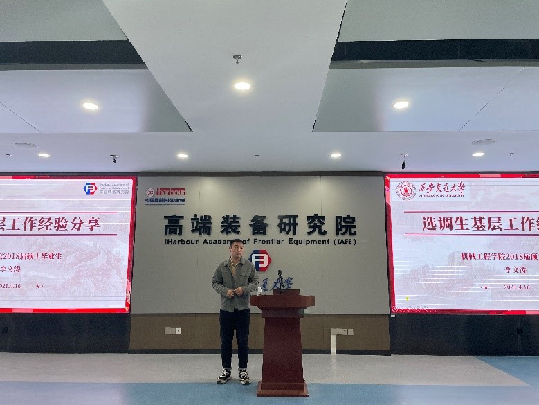 2018年届硕士毕业生李文涛在钱学森报告厅进行了选调生基层工作经验分享。分享会由av视频