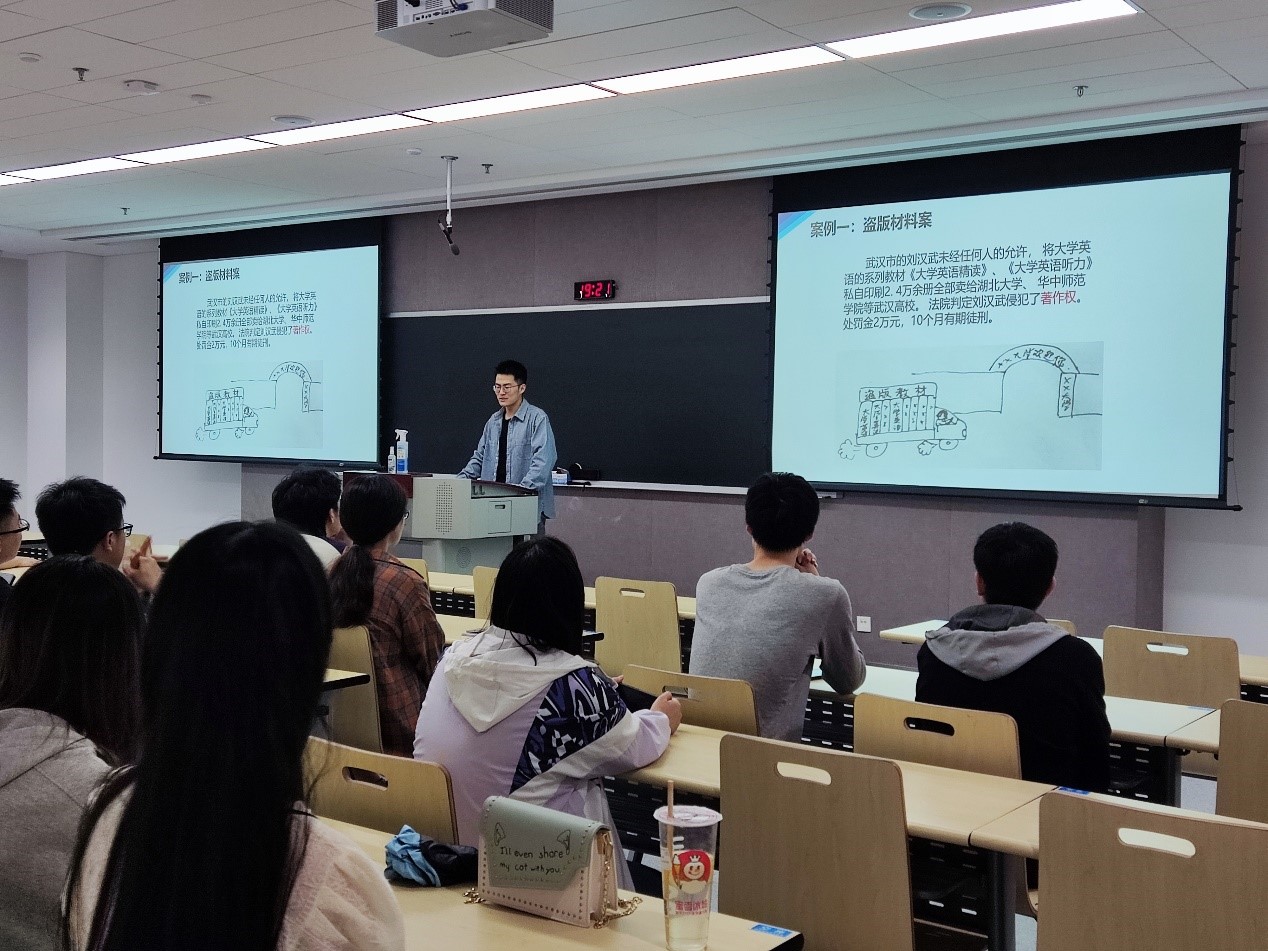 随后,刘逸林同志分享了一系列生活中侵犯知识产权的案例,并由此引出保护知识产权的重要性。在此,刘逸林同志为大家科普了民法典中关于知识产权保护的明确规定,即“故意侵害他人知识产权,情节严重的,被侵权人有权请求相应的惩罚性赔偿”,并解释惩罚性条款实行的原因。