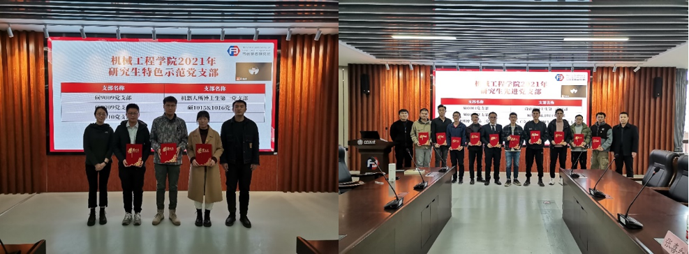 2021年研究生先进党支部”,并由杨江坤老师和张喜红老师进行了颁奖。