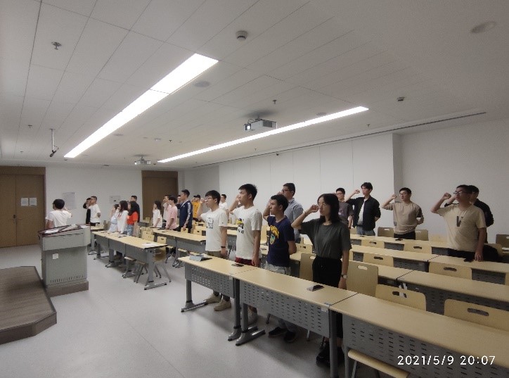 最后,我们重温入团誓词,期望大家要心怀“国之大者”,以社会主义建设者和接班人的使命担当,在攀登知识高峰中追求卓越,在肩负时代重任时行胜于言,在真刀真枪的实干中成就一番事业,牢记初心使命,切实按照总书记要求,严以修身,勇挑重担,勤于奋斗,勇当“时代新人”,不负韶华,不负青春,让“五四”精神在新一代青年身上更加闪耀。