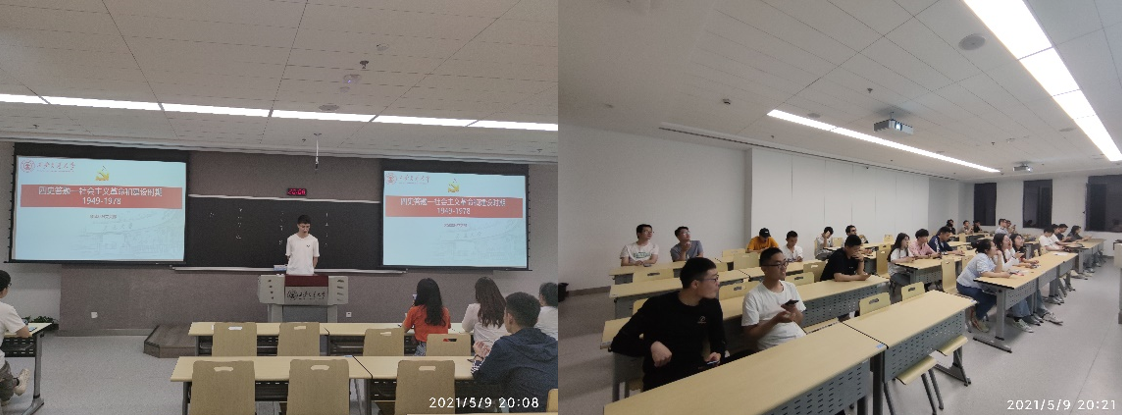 首先,吕佳文向大家介绍了这个时期的三个阶段:新民主主义向社会主义过渡时期、全面建设社会主义的探索时期、十年动乱时期和两年徘徊时期,并总结了社会主义革命和建设时期的成就。