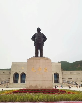 延安革命纪念馆由纪念馆和广场两部分组成。一座巨型毛主席铜像竖立在广场中轴线处,毛主席身着中山装,双手叉腰,身姿挺拔,双目炯炯有神,目视祖国的大好河山。这座铜像代表了人民对毛主席深深的思念和敬意!