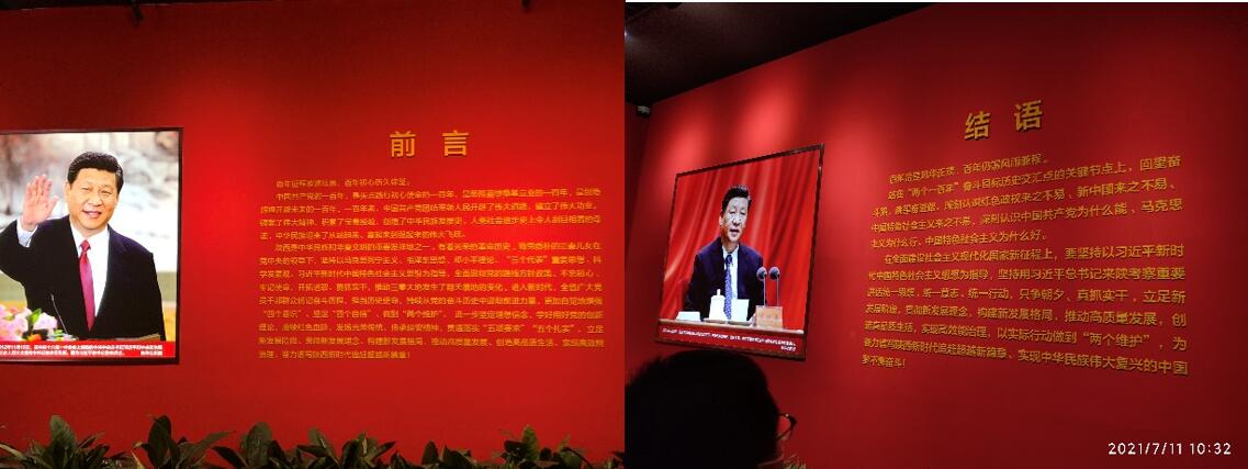 硕0007&0008党支部书记张旭超说:“陕博的建党百年庆祝展让我领略到了中国共产党如何从一个五十余人的党组织发展到如今近亿党员的壮大规模,如何带领中国从曾经处于半殖民地半封建社会到如今实现全面小康、消除绝对贫困的社会主义发展新阶段,如何始终坚持着中国共产党人的初心和使命,即为中国人民谋幸福,为中华民族谋复兴。如今,第一个百年奋斗目标如期实现,我们正意气风发地向着全面建成社会主义现代化强国的第二个百年目标迈进。请党放心,强国有我!”