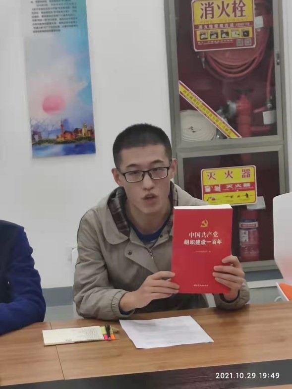 在中国共产党成立100周年之际,为深入学习贯彻习近平总书记在庆祝中国共产党成立100周年大会重要讲话精神,大力弘扬伟大建党精神,一以贯之推进党的建设新的伟大工程,2021年10月29日,硕0004党支部召开“中国共产党的百年建设”专题学习会。由于支部成员处于不同校区,本次学习会在线上线下同步进行。