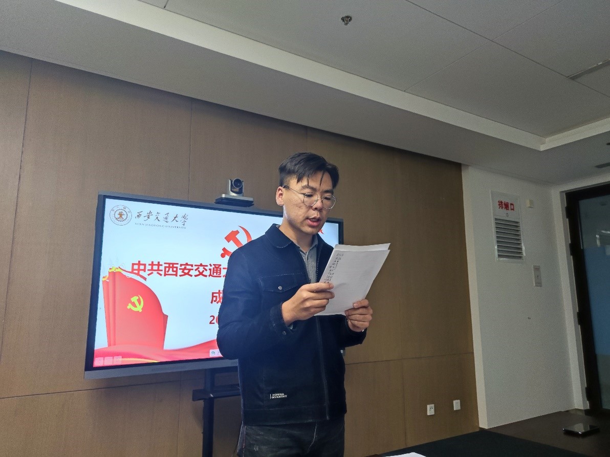 党支部成立仪式在庄严的国歌声中拉开序幕,经过前期线上会议的自荐和讨论,推荐出四位党支部支委会人选,形成班级推荐名单,并报送上级初审。分党委委员统筹考虑各方面综合情况后确定最终委员推荐人为:雷杨浩、蒋志煨、范博超、陈彩蓉四名同志。由临时负责人雷杨浩宣读《选举办法》并进行举手表决。