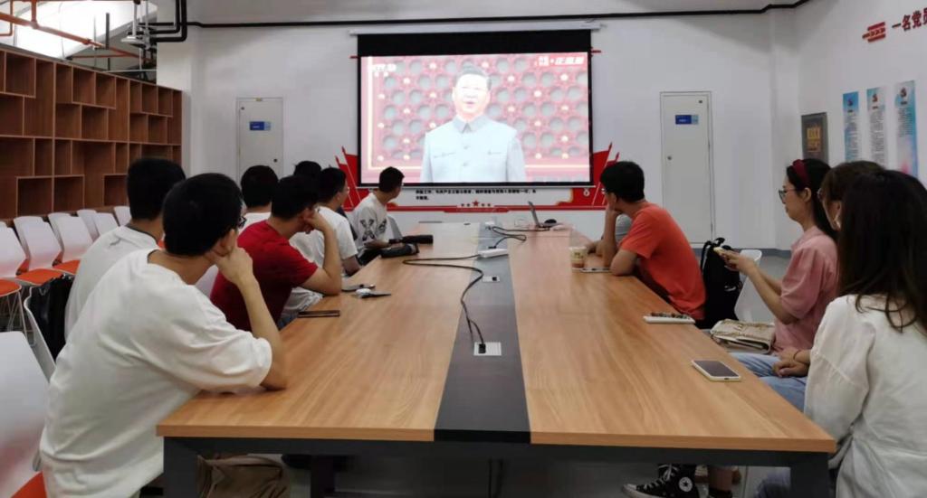 硕9010党支部于2号巨构党员之家集体观看“庆祝中国共产党成立100周年大会”。本次会议由苏文杰同志组织,支部全体党员和部分入党积极分子参加。会议上,党员佩戴党章,在习近平总书记的带领下,重温中国共产党的成立与发展,总结党的工作与进展,不忘初心,牢记使命,继续以新的伟大实践书写未来美好的新篇章。