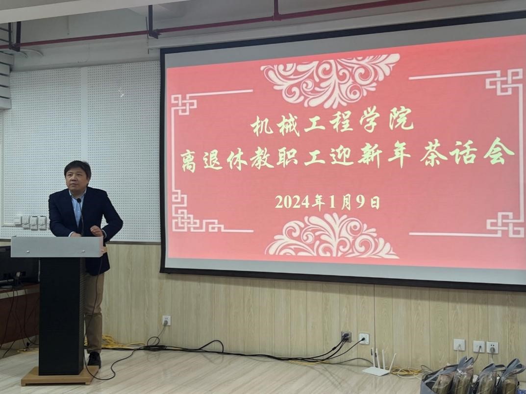 茶话会上,张俊斌代表学院领导班子和全体教职工向各位老同志们致以新春的祝福和诚挚的问候,并向退休教职工介绍了2023年学院在学科建设、人才培养、教学科研、师资队伍等方面所取得的成绩。他表示,离退休老同志是学院发展的亲历者、见证者和贡献者,是支持学院发展的宝贵财富,学院广大师生要继续发扬老前辈严谨治学、甘为人梯的精神,为机械学科的一流建设贡献自己的力量。